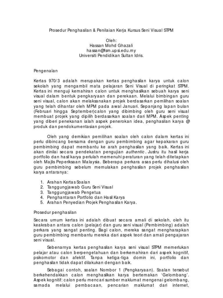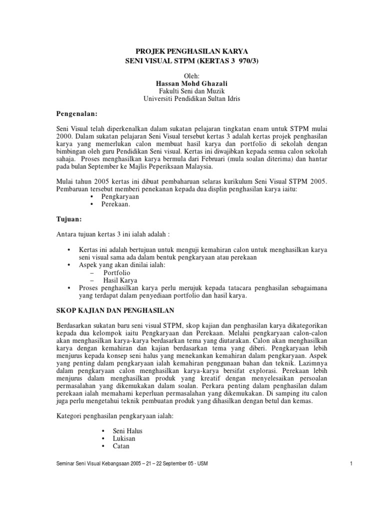 Projek Penghasilan Karya Seni Visual Stpm Pdf